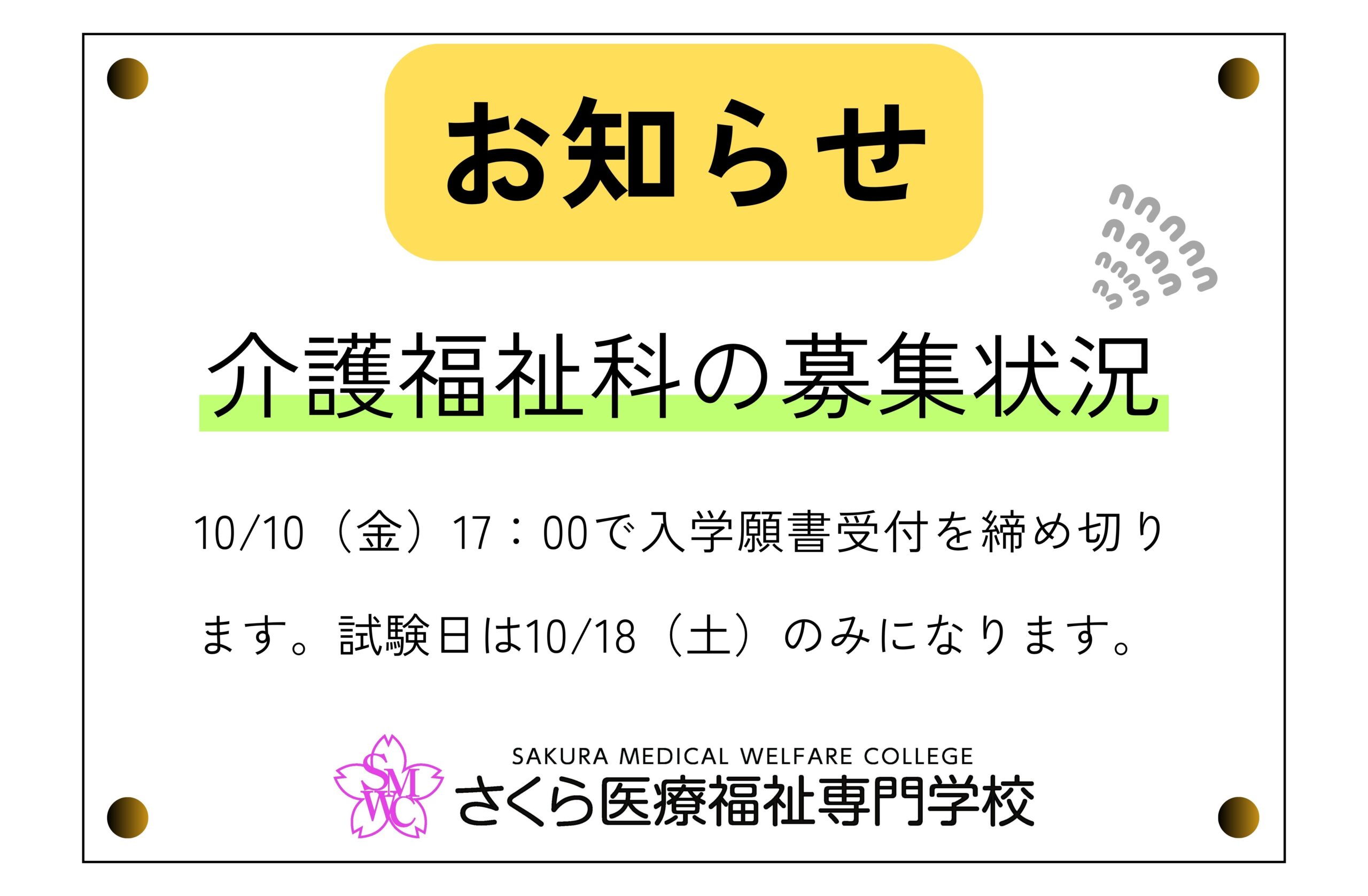【介護福祉科 2026年度 入学生募集締め切りについて】