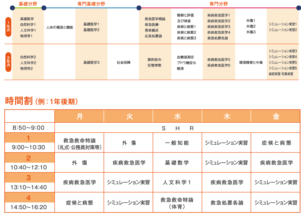 本校は2年という最短コースで救急救命士を目指すことができます。